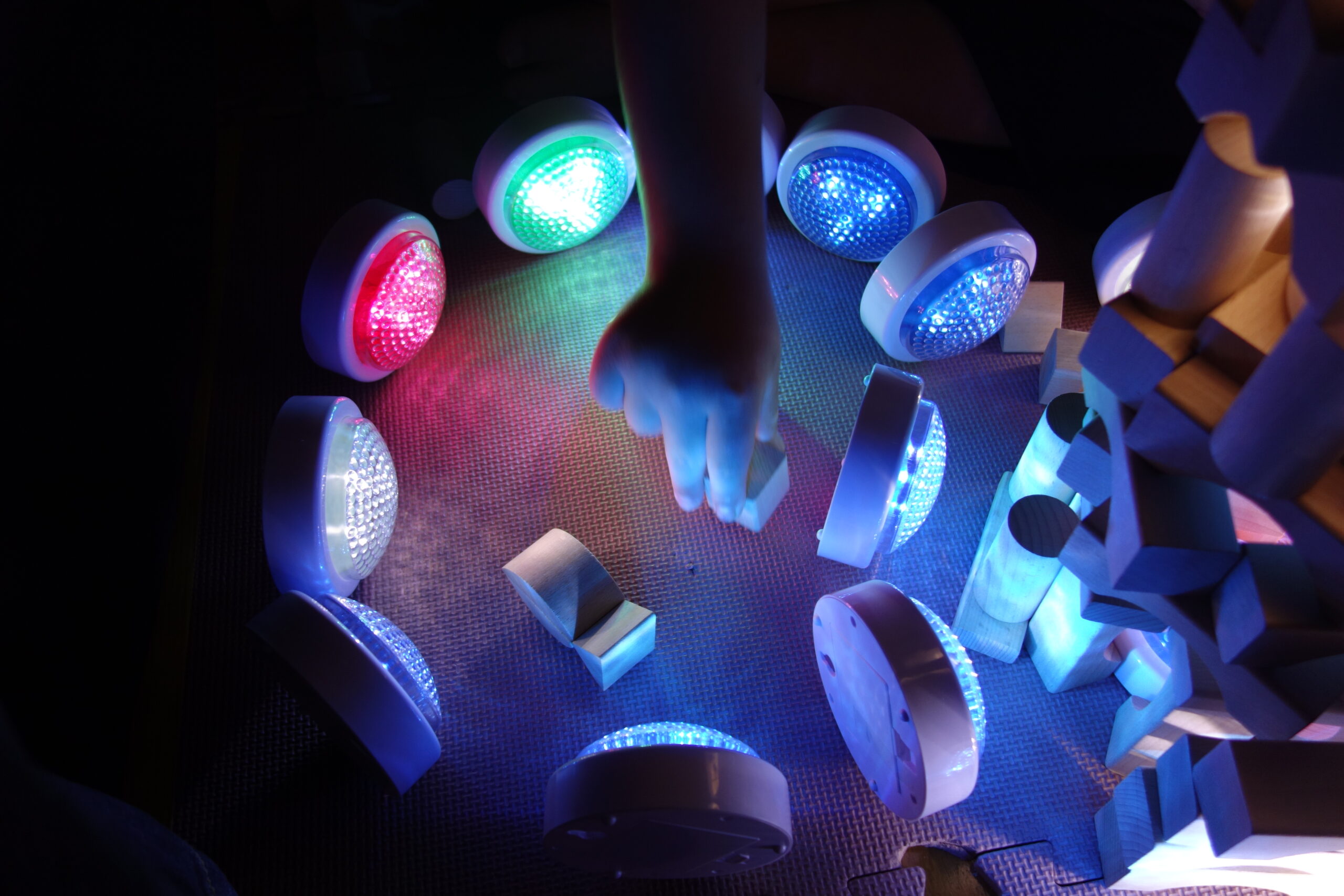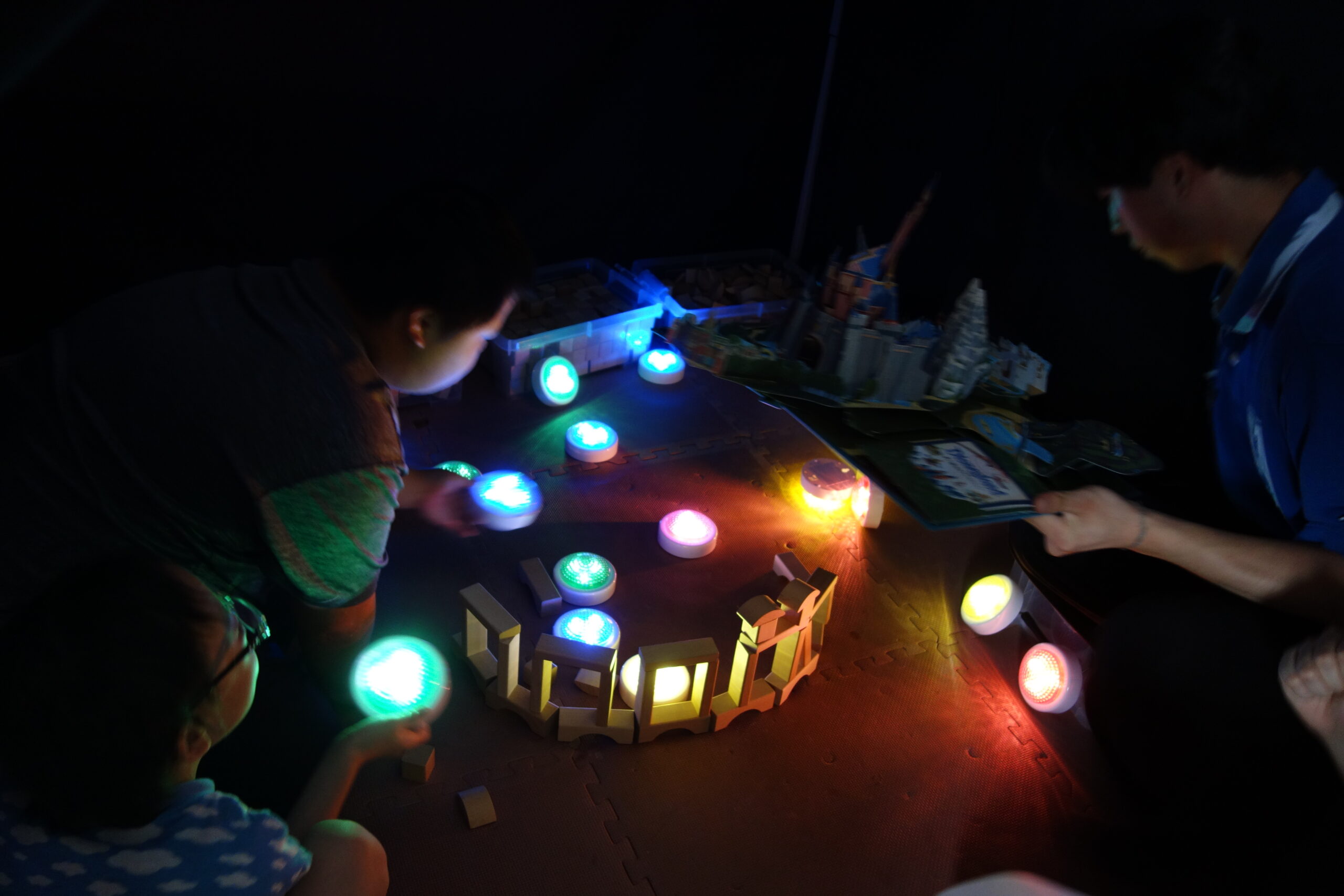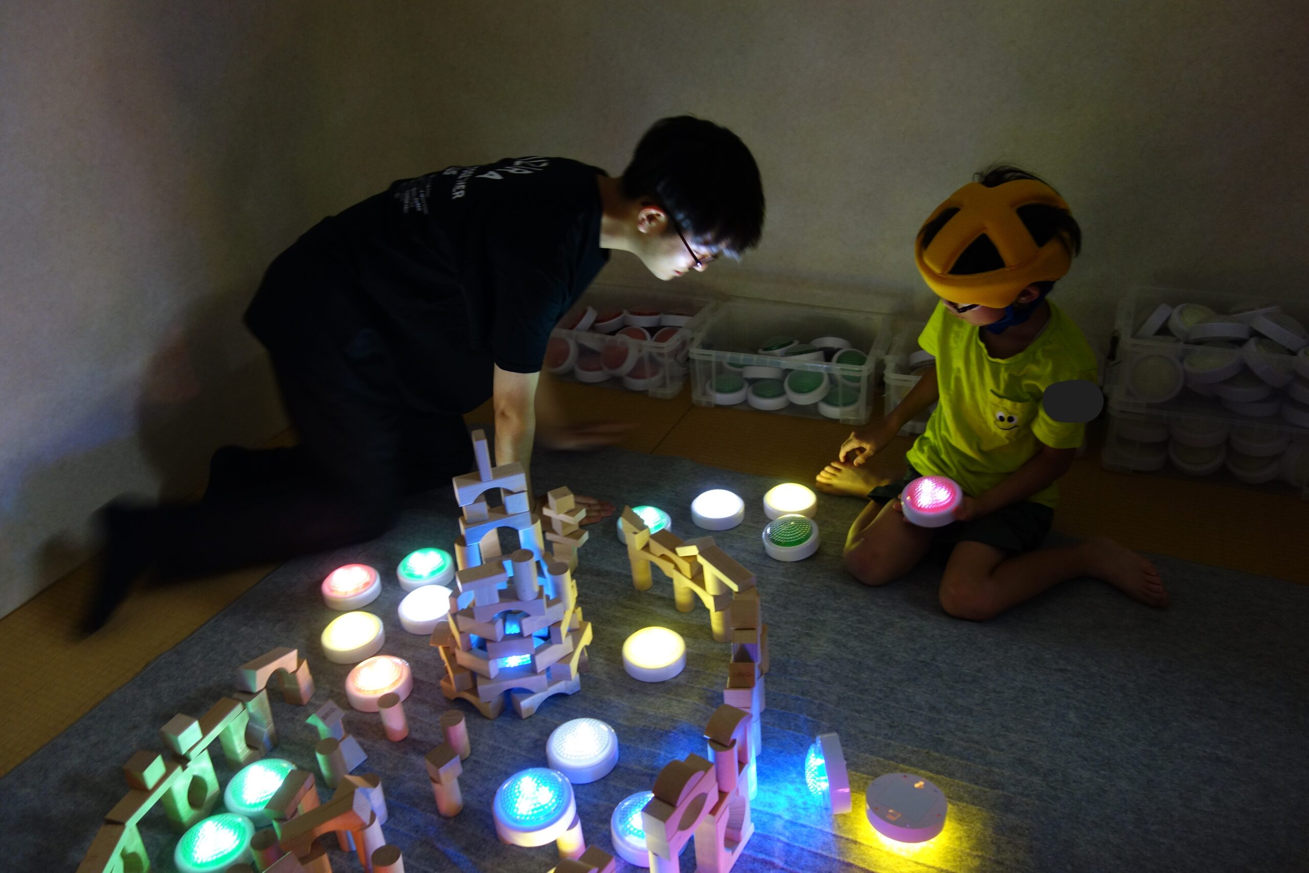 暗い部屋で光や音、香りなどを使い、