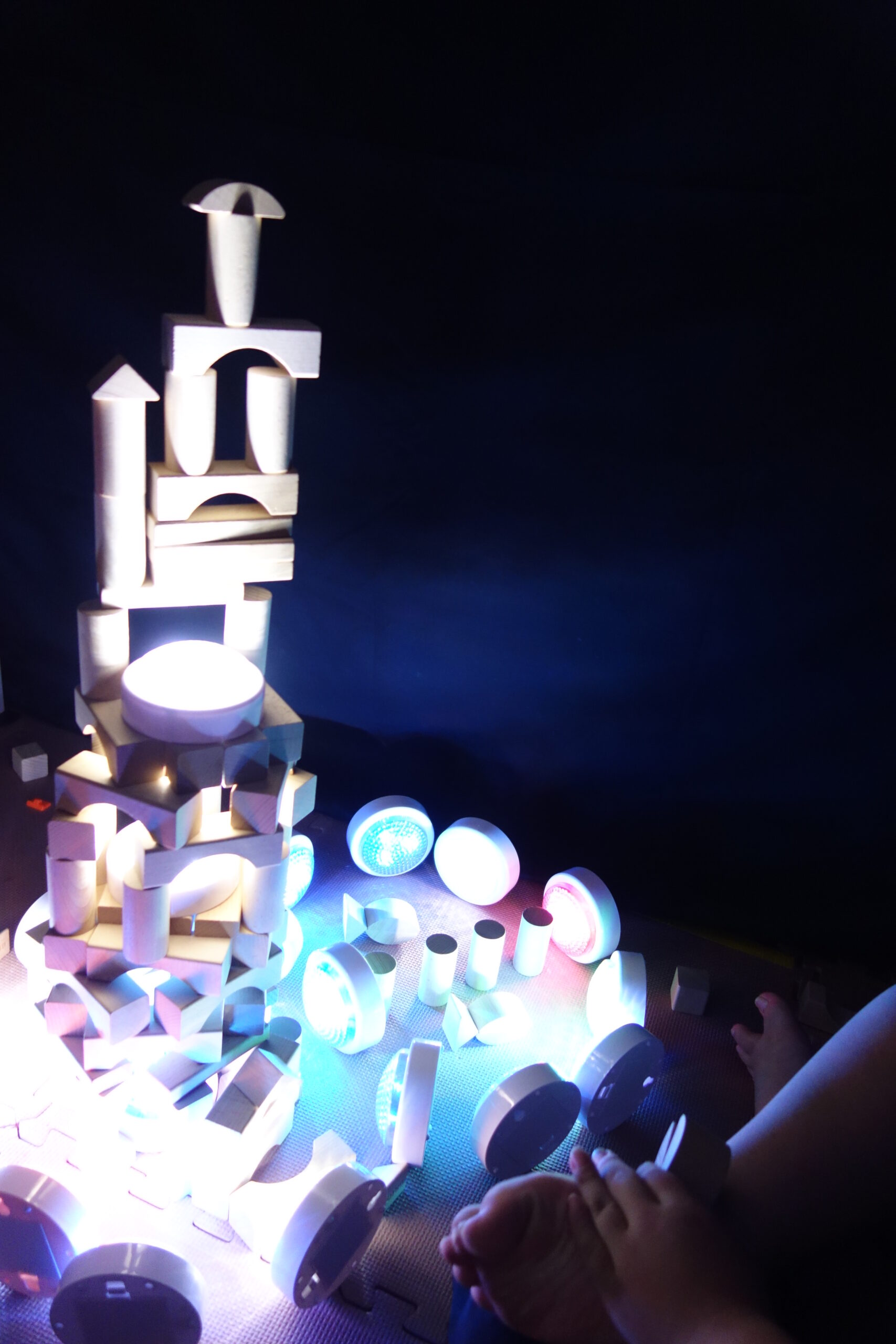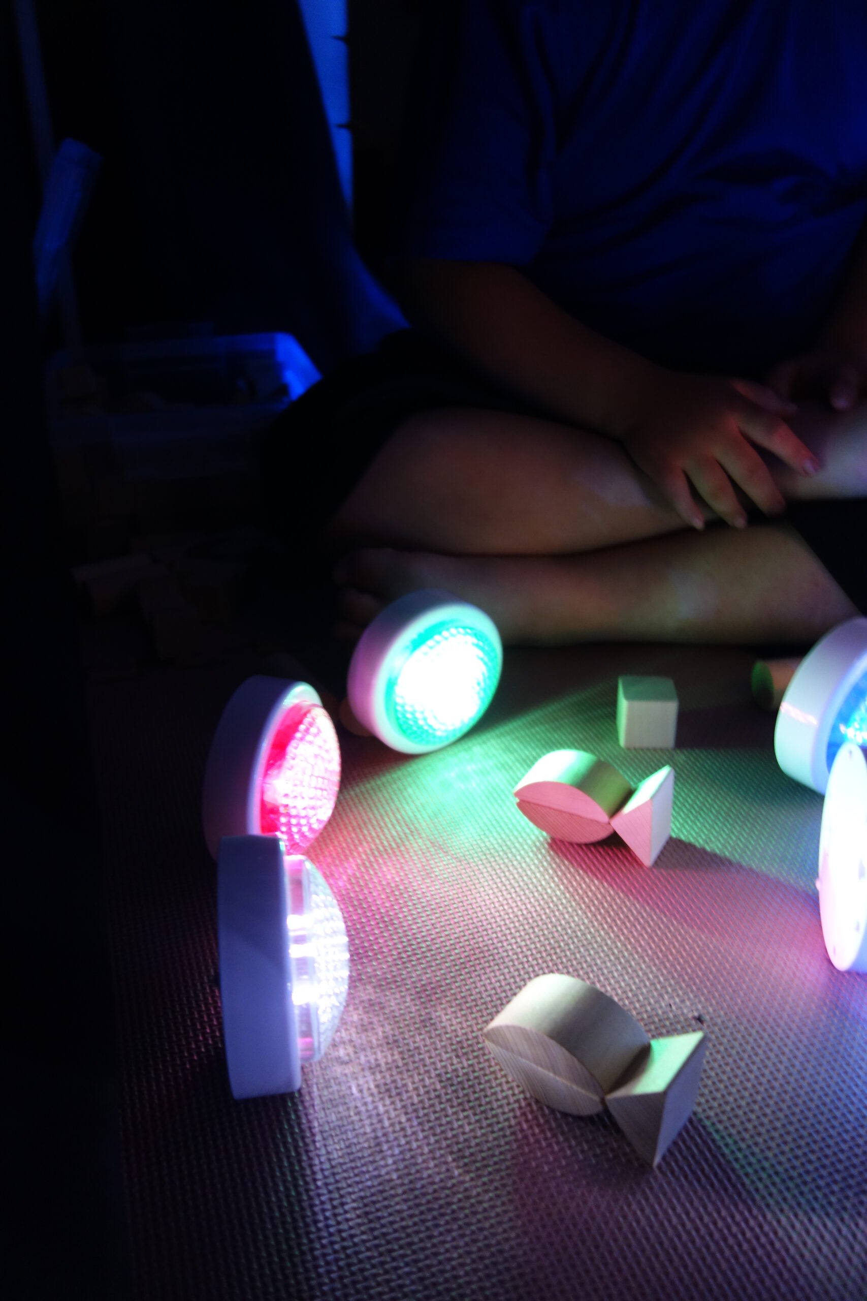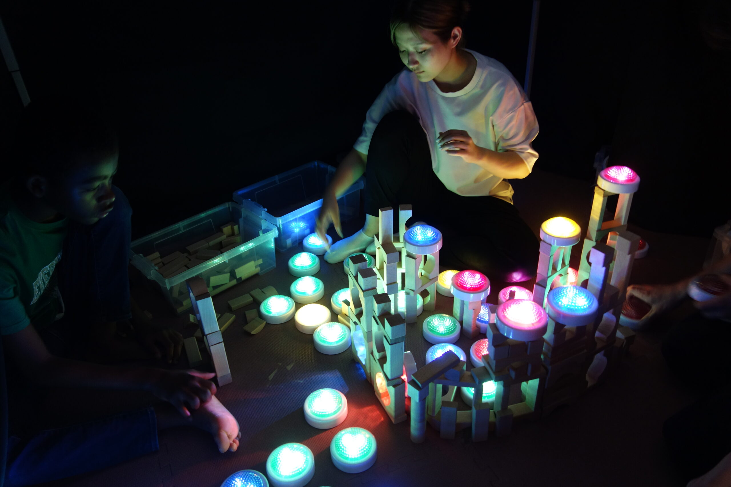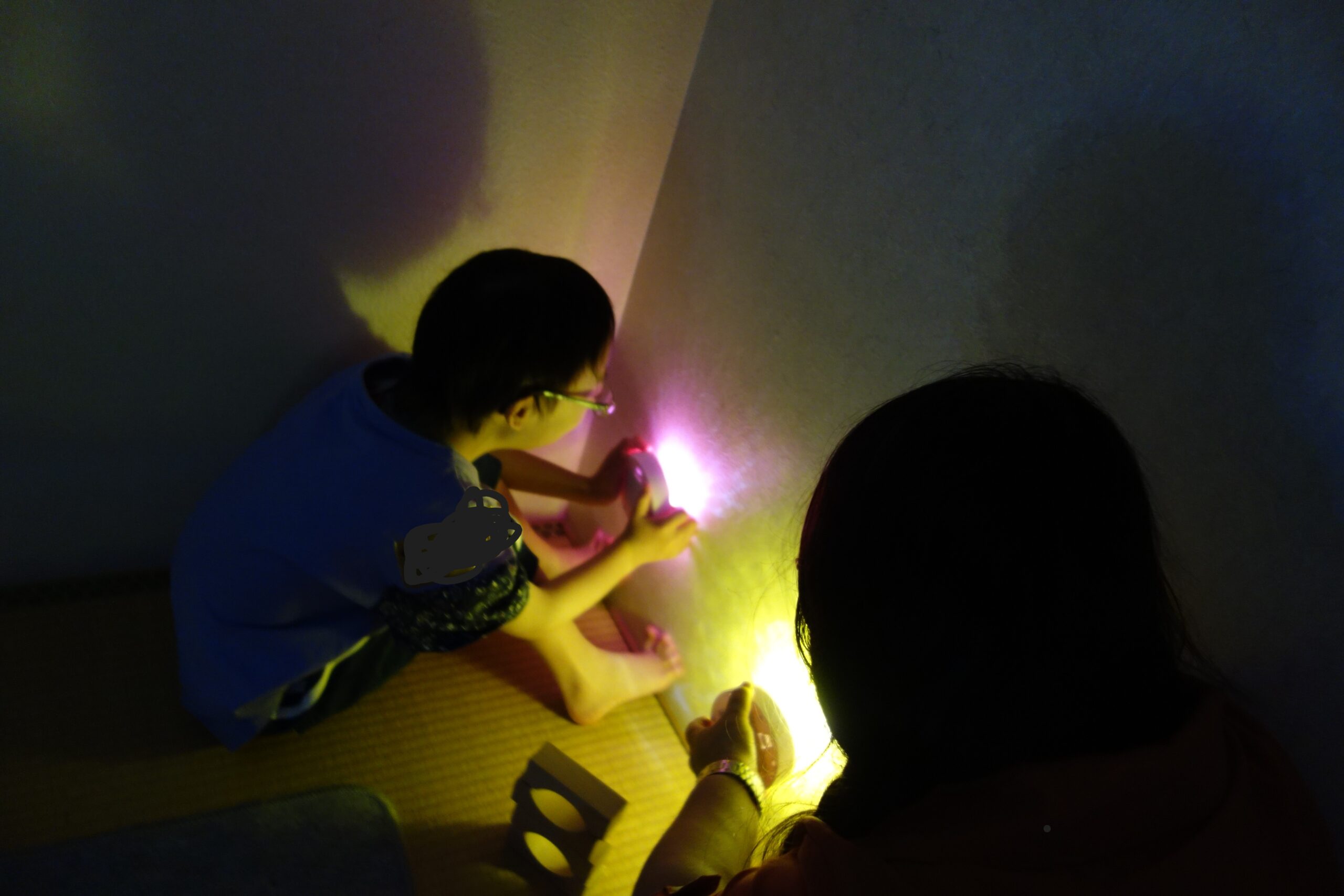 暗い部屋で光や音、香りなどを使い、